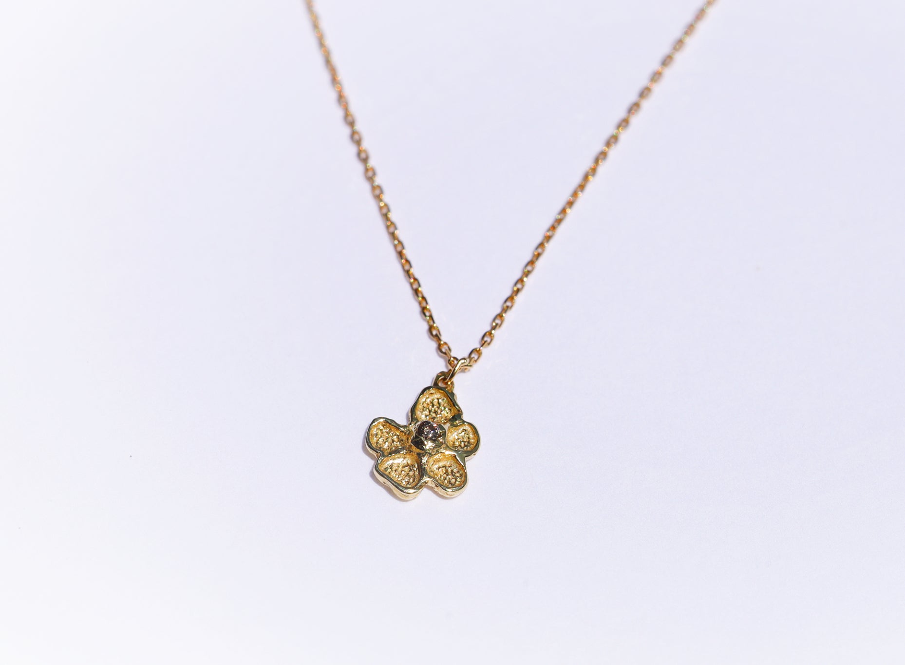 A tiny blossom woven in gold, echoing the grace of antique lace.