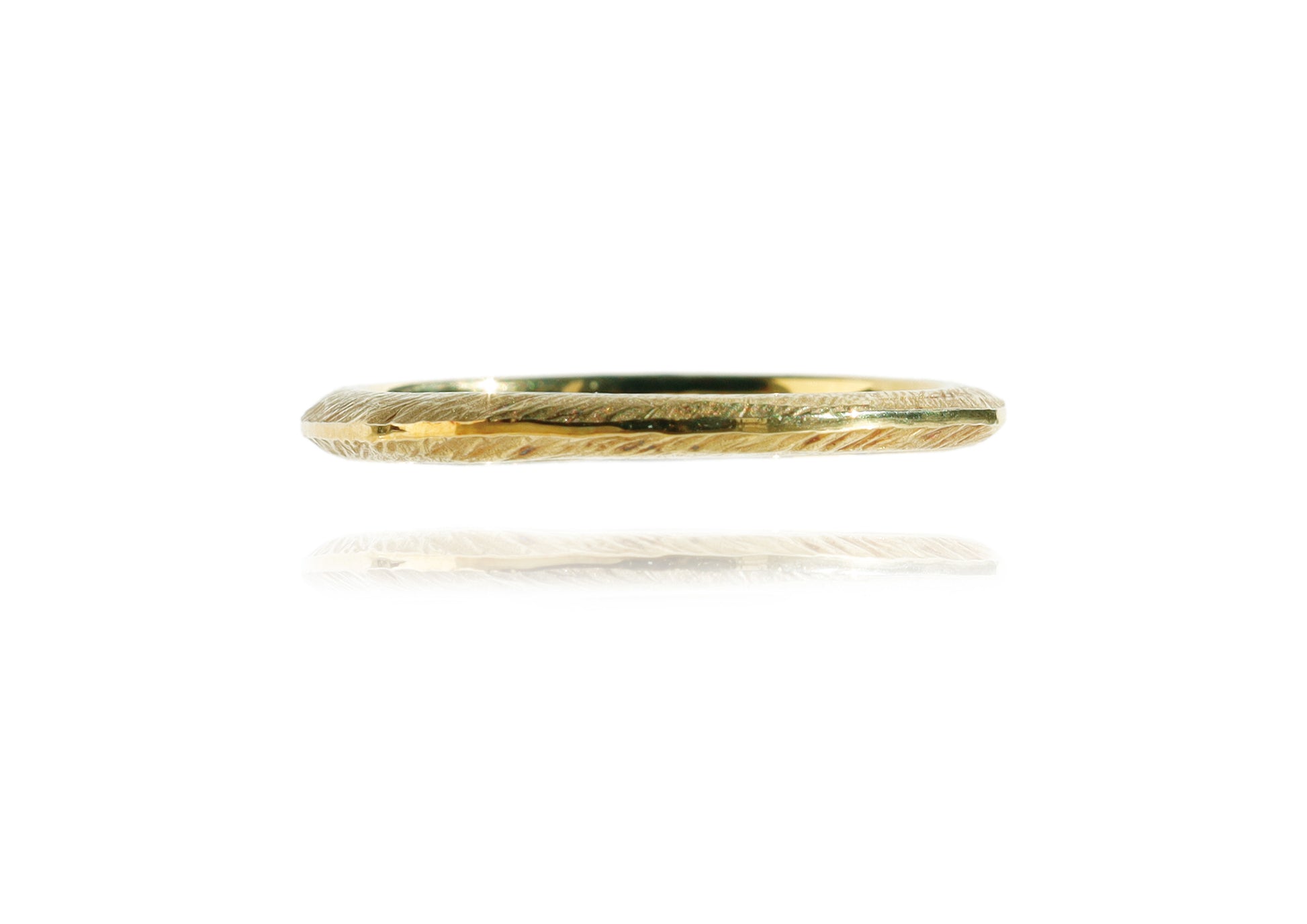立体感のあるシャープな甲丸の形状で、内側のへりにも丸みを持たせ、日々心地よく着用できるよう工夫しています。